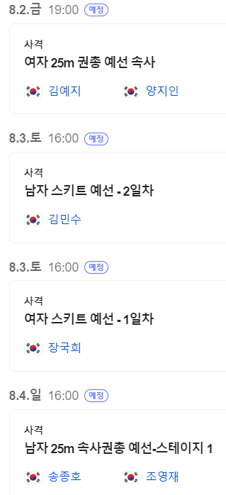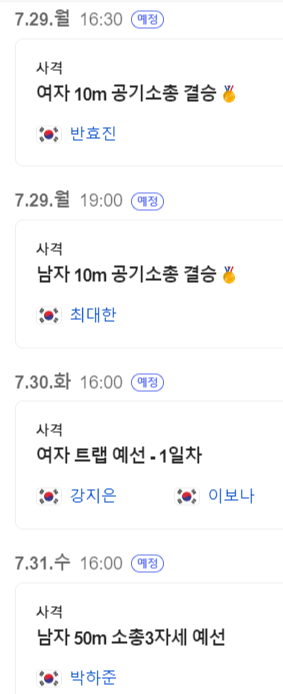 2024년 7월 29일 ~ 8월 4일까지 대한민국 사격 국가대표 선수들의 메달 물결이 이어지면 좋겠습니다.